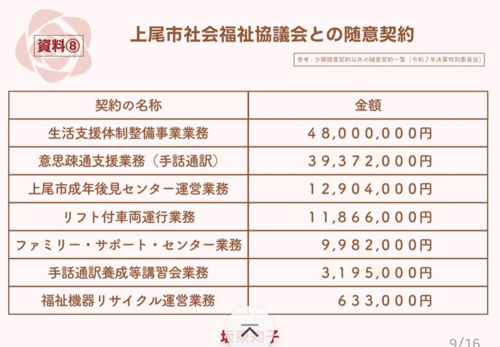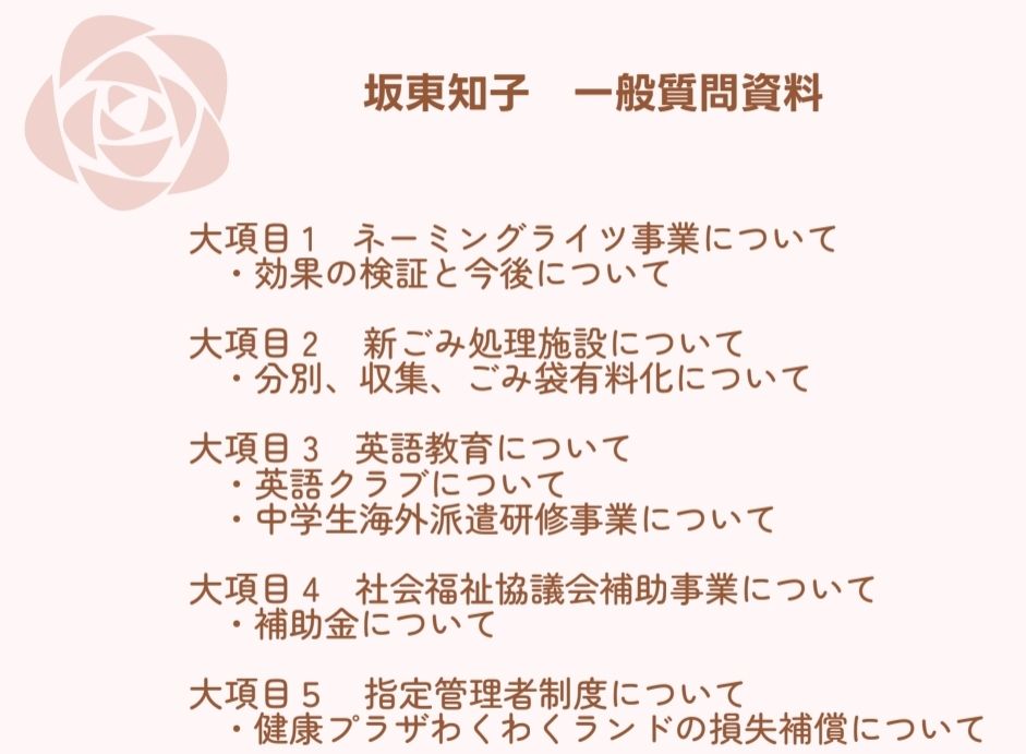 9月の一般質問では、海老原議員も社会福祉協議会や指定管理者制度について質問されていました。資料の共有の許可をいただきましたので、ぜひご覧ください。