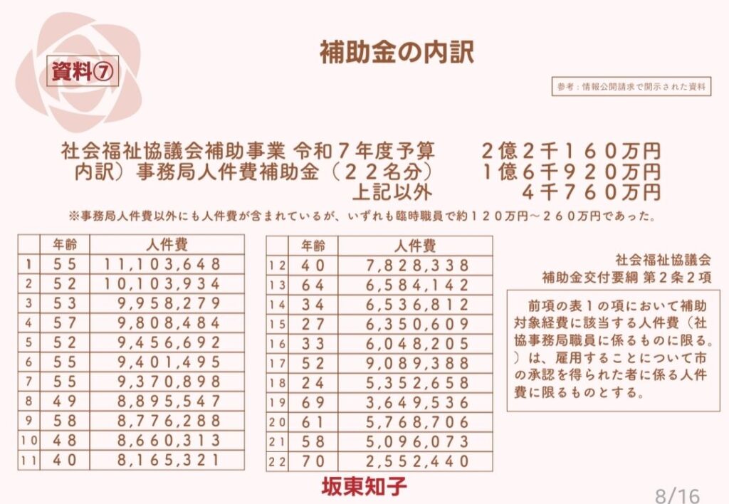 社会福祉協議会補助事業については、22名の人件費に市の職員同等の給与が支払われていることについて、職務内容の把握を要望しました。