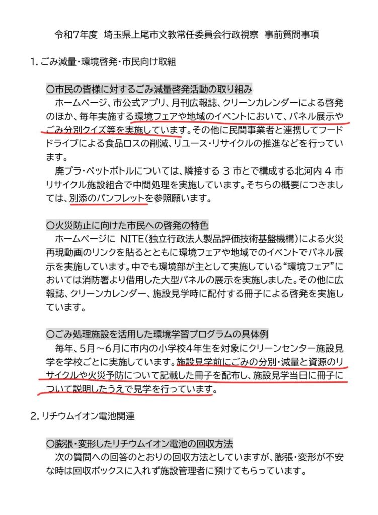 今後上尾市では、燃えるゴミとプラゴミの分別が必須となりますが、分別に対する市民意識が何より重要だと思います。