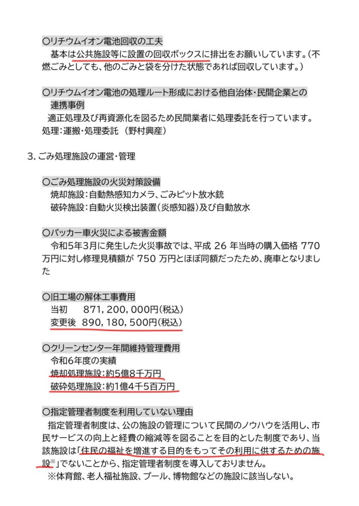 西貝塚環境センター解体時には10億円以上の費用がかかるのではないかと予想されます…。