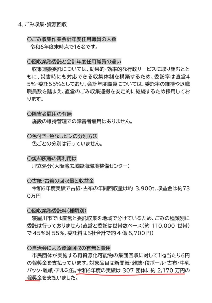 自治会も資源回収を行っているようですが、奨励金約2,170万円というのは上尾市の半分以下です。