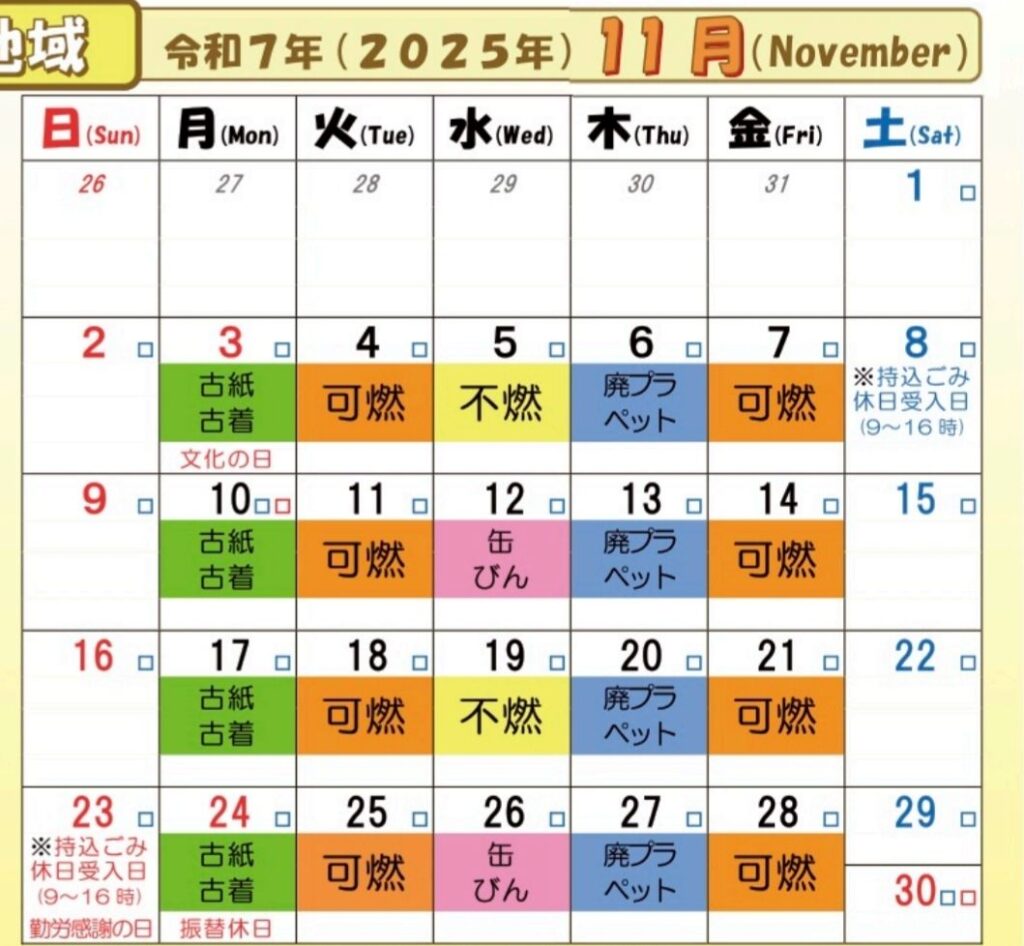 回収量が少ないと考える理由は、寝屋川市は資源回収が週1回で月4回もあるからです。