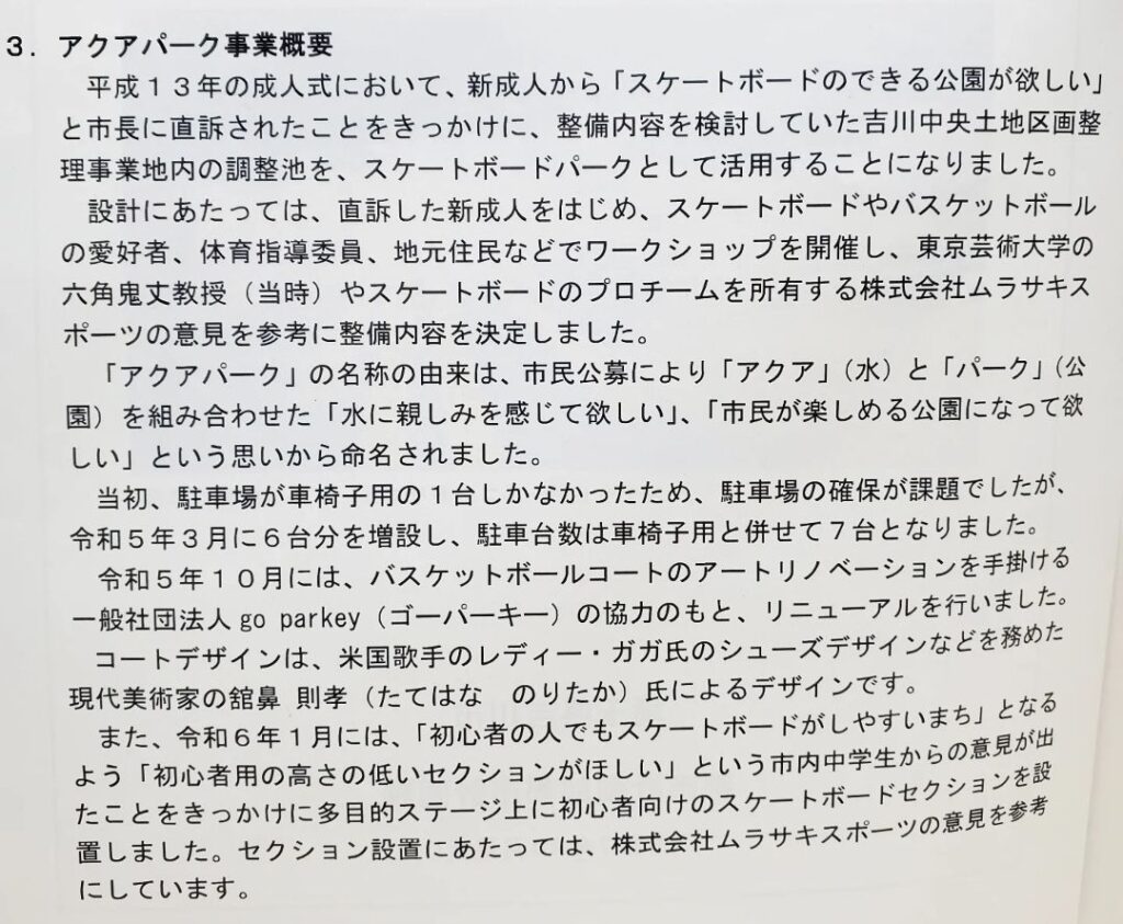 アクアパークはムラサキスポーツさんなど企業のアドバイスをいただきながら整備されたようですが、まずは、スケートボードをやっている当事者の方々からご意見をお聞きしていきたいと思います。