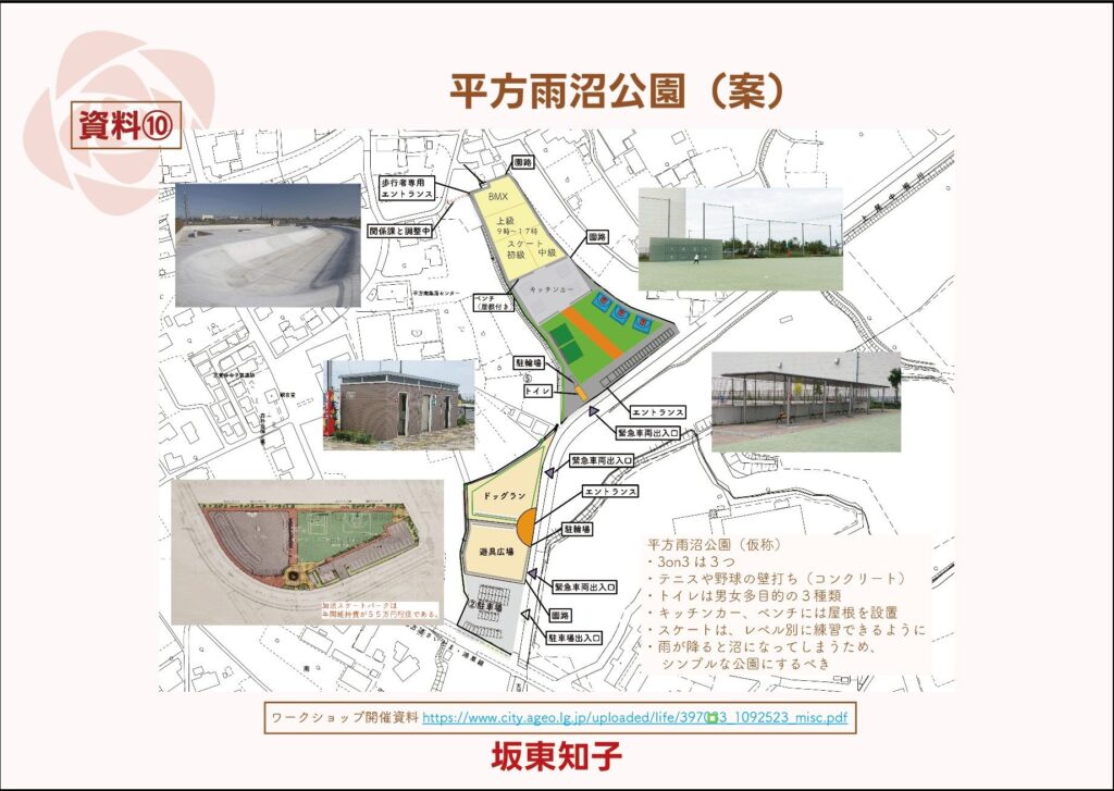 公園整備については、現在新たに2つの公園整備計画中ですが、費用や来場者数等、計画過程についてや市長公約のアーバンスポーツパーク整備実現に向け要望しました。