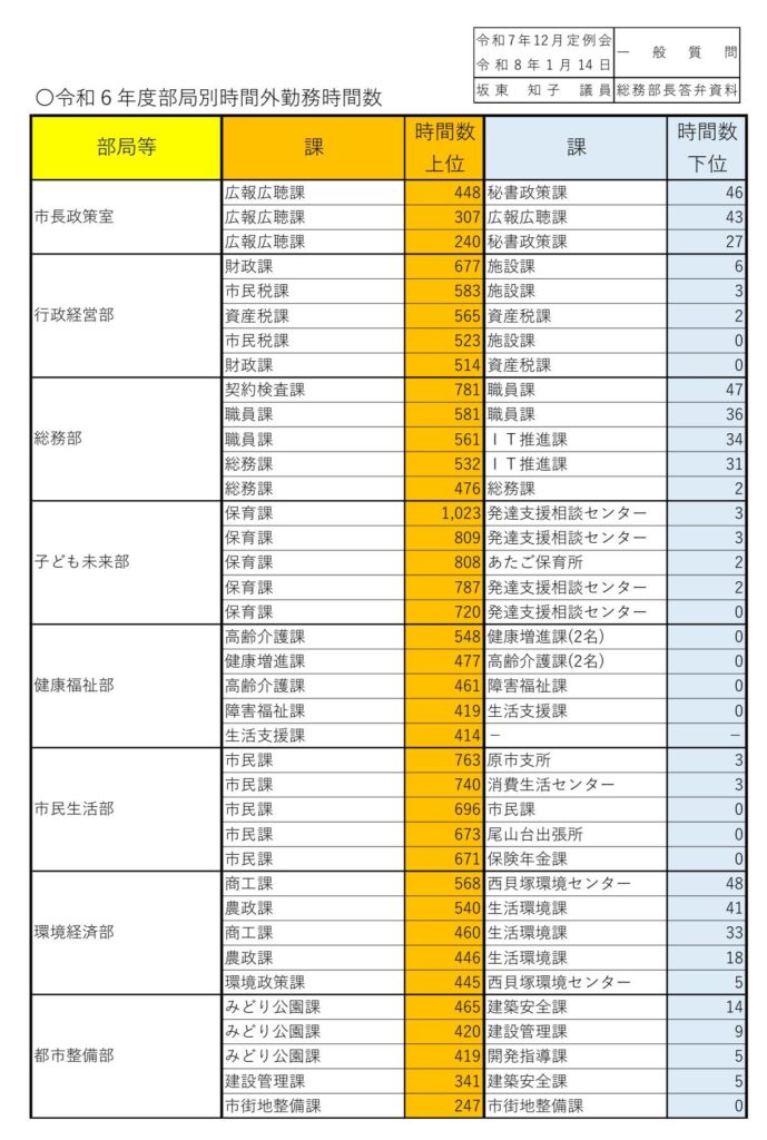 職員の労働環境については、職員の時間外労働時間が多い事に対して改善を求めました。