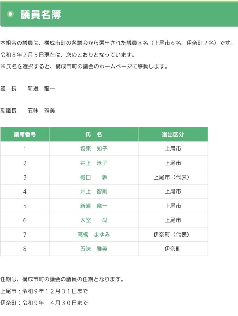 組合議員名簿もホームページに掲載されています。
