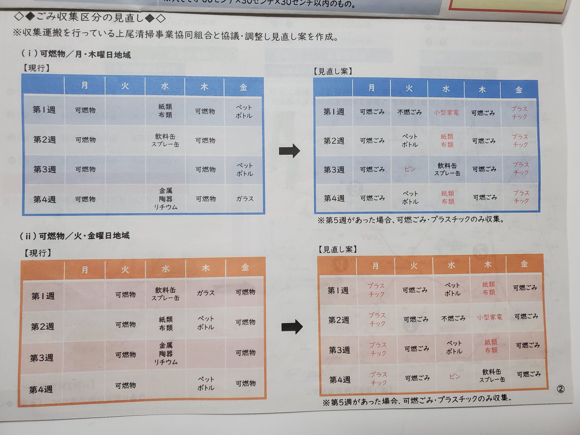 見直し案では「紙類布類」回収が月2回となっています。