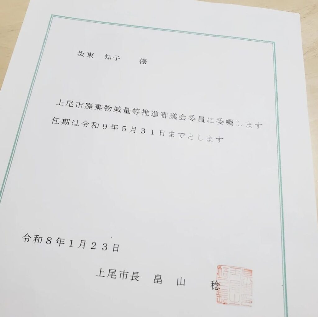 上尾市廃棄物減量等推進審議会委員となりました。