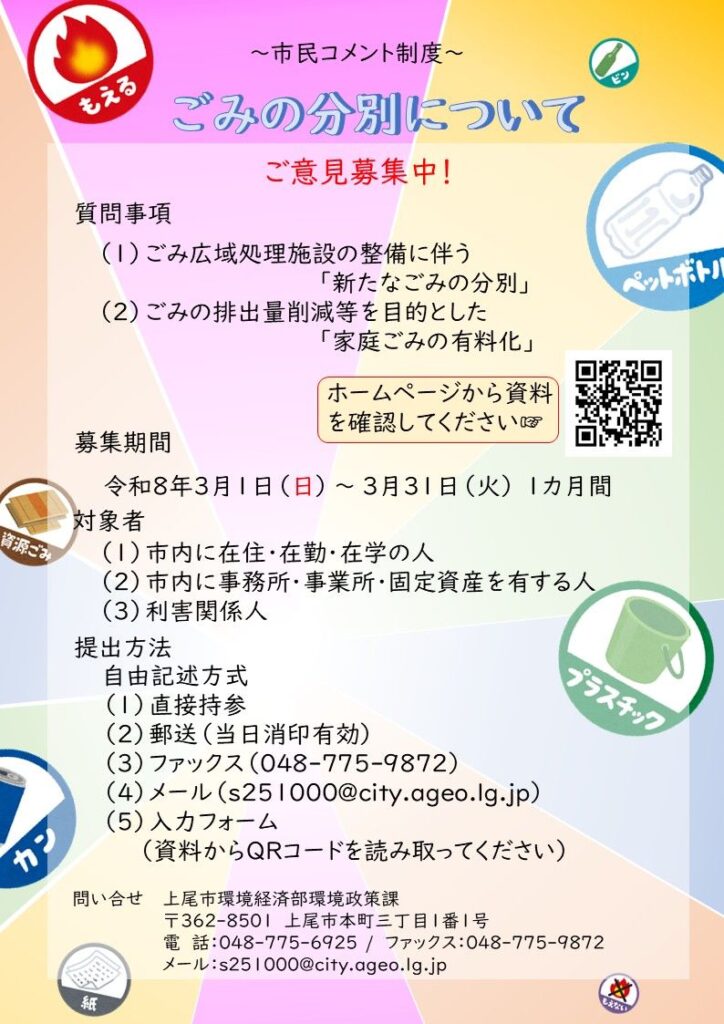 ごみの分別に関する市民コメント制度による意見募集 – 上尾市Webサイト