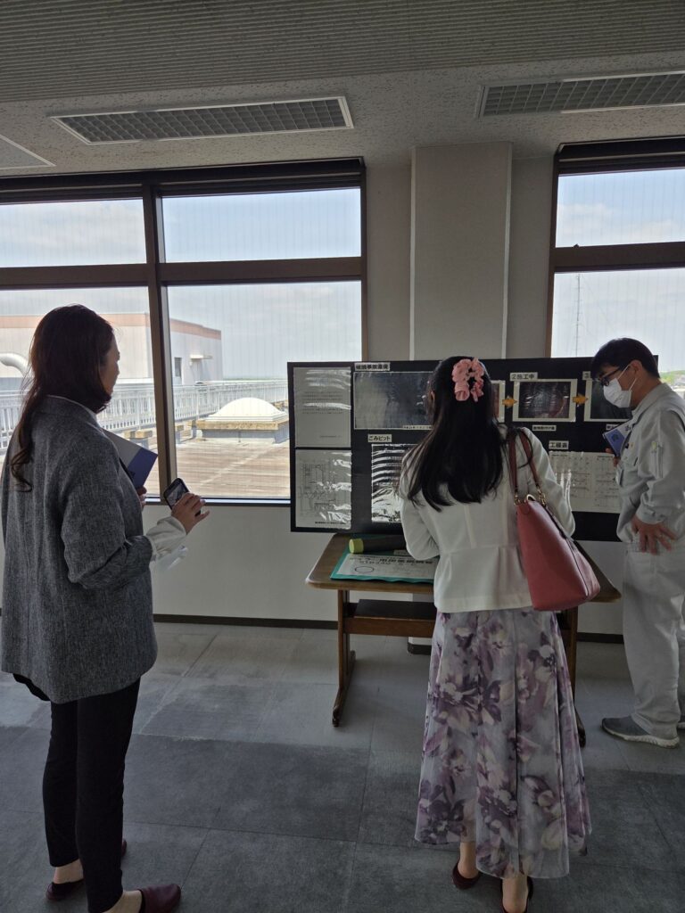 その後、ごみ処理施設へ移動し館内に入り、広い会議室で、事前に質問していた事項について説明していただきました。