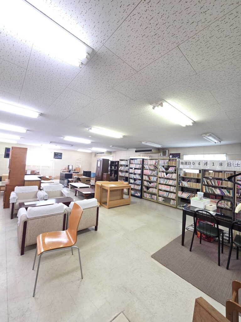 たくさんの家具やマンガ本などがあり、無料でいただけるようですが、色あせた本や年季の入った家具などもあり…